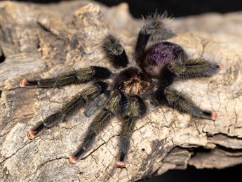 This stunning species starts off pink like many other Avicularia species and as it ages into its adultt coloration gains brilliant green legs with a gold carapace and a purple abdomen and of couse the iconic pink toes.
