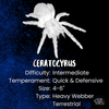 This striking African species is best known for the horn-like protrusion on its carapace, giving it a truly prehistoric look. Its body features a beautiful speckled pattern and earthy tones, making it both bizarre and beautiful. A heavy Webber with lots of personality, this tarantula is a must-have for keepers who love oddball species. Grab this unique showstopper while it's available!