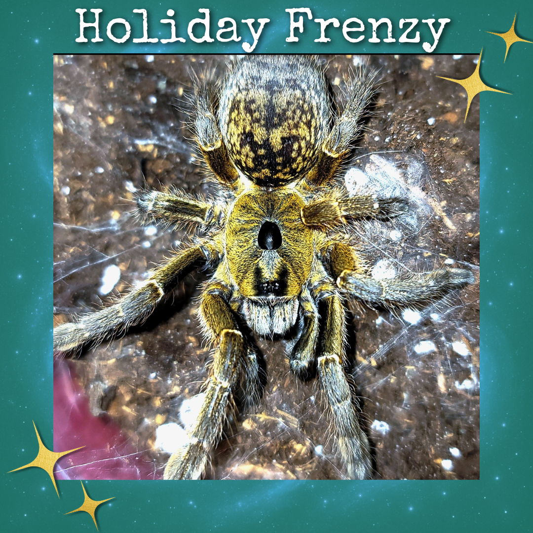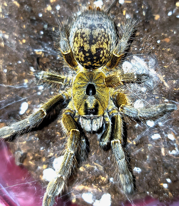 This species features an amazing shining gold coloration on the carapace with gold speckles on the abdomen - making it one of the most decorative "baboon" species in the hobby and possibly the most beautiful!