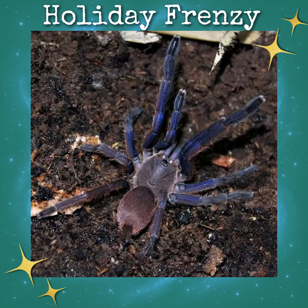 This Asian heavy webber species features a beautiful blue coloration that is similar, but not quite as intense, as the Electric Blue Tarantula.