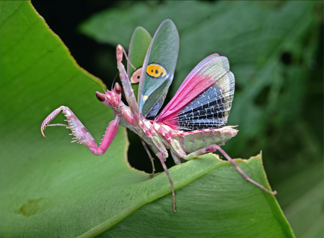 This amazing flower mantis species features an amazing striped pattern that often features a white body with pink bands with pink wings.