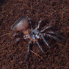 One of the most bizarre spiders in the hobby, this species features a heavily armored, circular abdomen that functions like a trapdoor plug.
