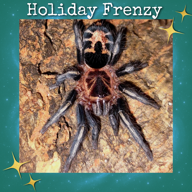 This gorgeous species only gets about 2" and has an amazing coloration of white legs, a neat striped carapace and striped abdomen pattern.Â