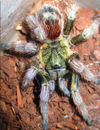 This green and red Chilean species is definitely unique. Green is very rare in tarantulas, and green and red is even more rare!