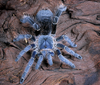 This is a gorgeous docile species from South America that features a blueish coat and pink hairs. Adult females can appear sky blue with pink hairs and a white ring around the carapace (hence the english name).