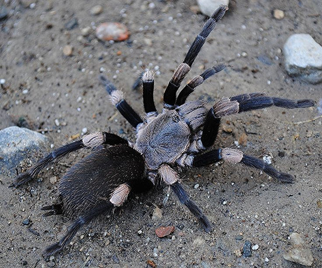 This stunning species features a sleek black body with strikingly striped legs, making it an eye-catching addition to any collection.