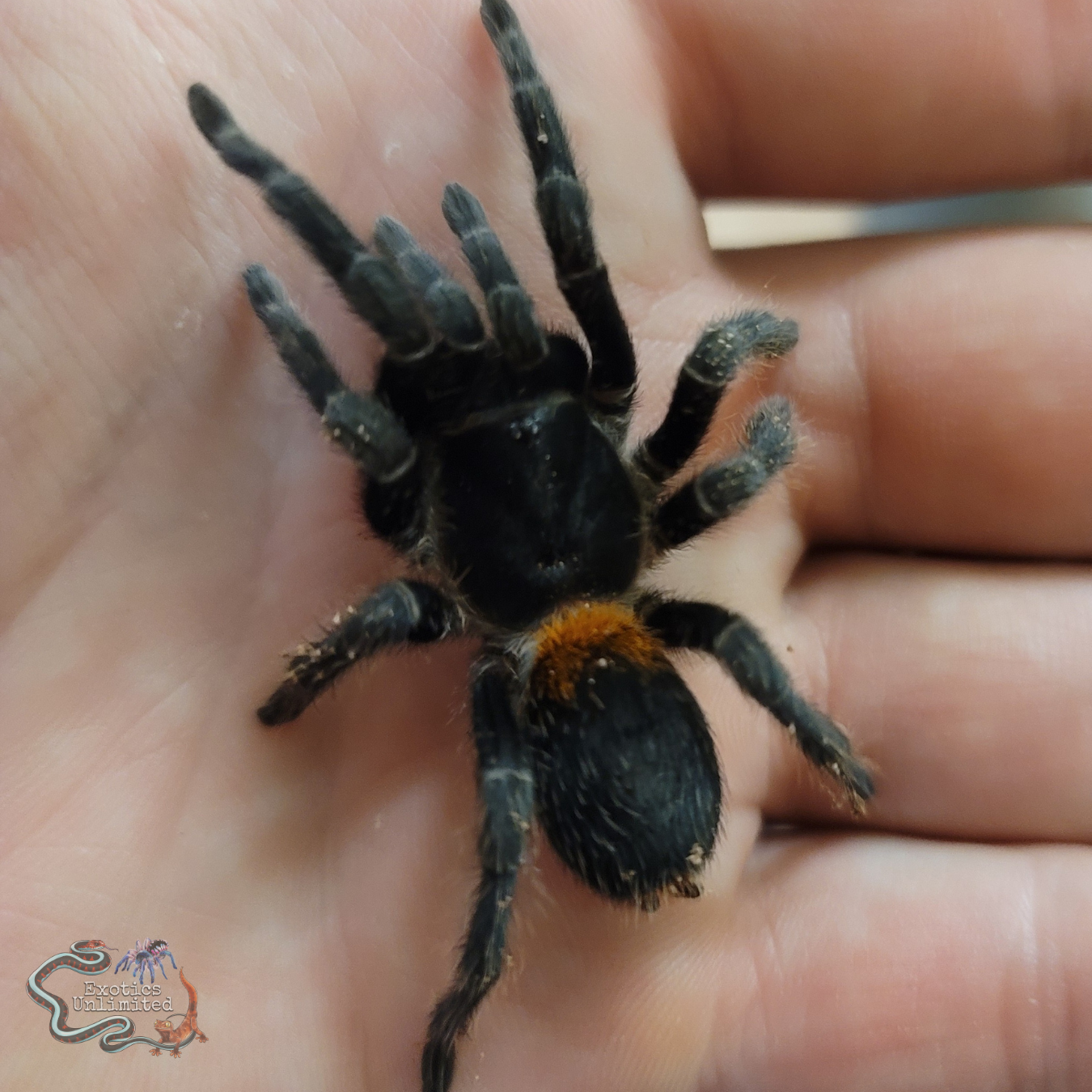 We measure tarantulas and spiders in diagonal legspan. This means the distance from the front right to back left leg (or vise versa) when the animal is stretched out.
