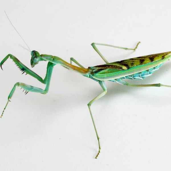 A striking African species with vivid green coloration, zebra-like stripes, and yellow eye spots. Adults grow 2-3 inches, with females being larger. Easy to care for and great for both beginners and experienced keepers.