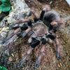 This fast-growing terrestrial reaches up to 8", making it a great display tarantula for hobbyists who enjoy bold feeders with flair. While generally calm, they can be defensive when disturbed, so better suited for intermediate keepers and up.
