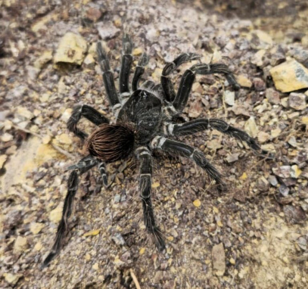 This striking species from South America is one of the larger bird eaters in the hobby, growing up to 8 inches in legspan. Its name comes from the deep black coloration that develops as it matures, often with subtle iridescent tones under light.