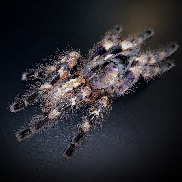 Another great purple species from India, the P. tigrinawesseli features an amazing purple carapace, and purple femurs (first section of the legs).