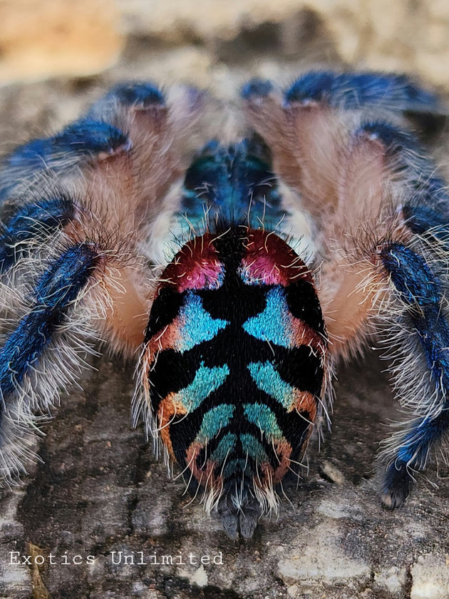 The stunning Brazilian Jewel is pinnacle of color when it comes to tarantulas. This magestic dwarf is one of our most popular species, since our many years of studying and working with this species has led to the overwhelming success with our customers!