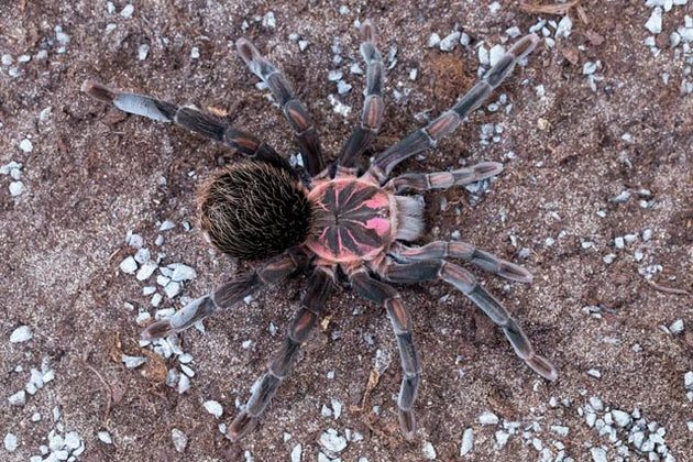 The males feature a stunning bright pink body and legs, while the females still feature gorgeous pink highlights all over the carapace, body and legs.Â