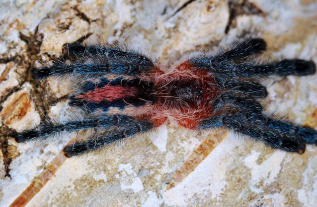 Similar to others in the genus, the juvenile coloration is also stunning as they transition to adult colors they gain blue legs, with a pink, red and black abdomen (first photo) keeping some of those red "fangs".Â